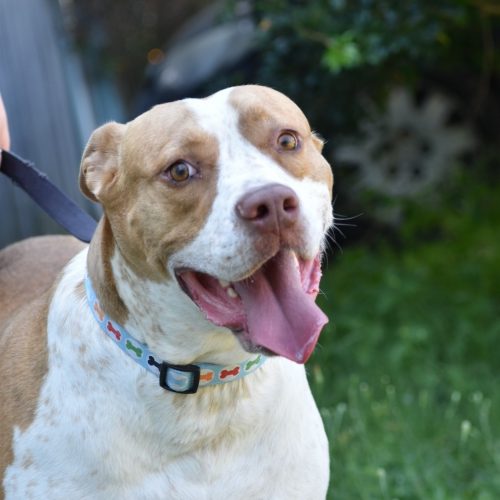 This gentle boy is incredibly placid for his size and has lovely manners. He already knows basic commands like sit, stay, lie down, and gentle. Rocky gets along well with dog-savvy cats and has even made a feline friend in his foster home. He’s also great with smaller dogs then him or female dogs and children, making him a wonderful family companion.