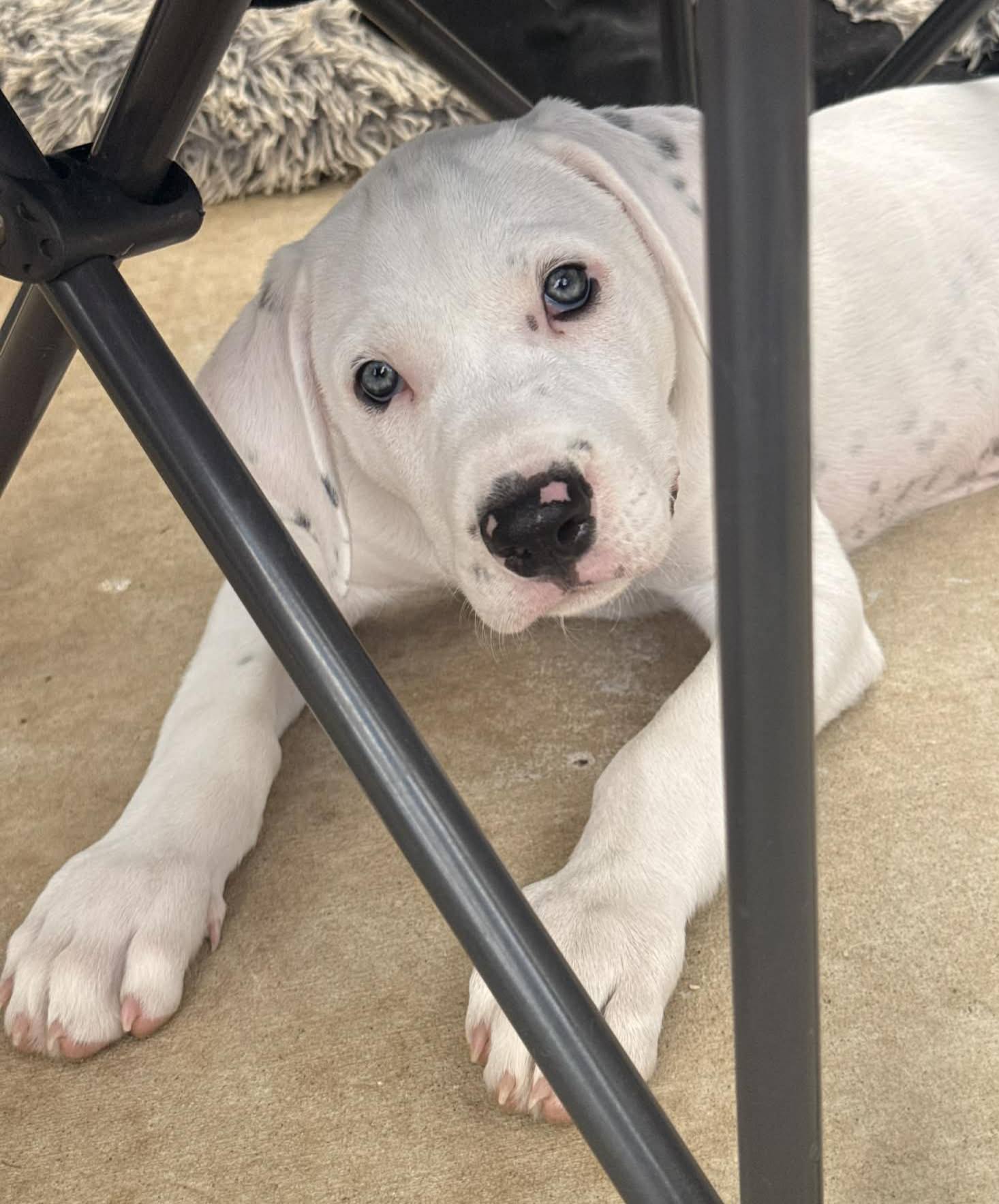 I’m currently working on my toilet training and crate training, and I’m learning quickly. I enjoy other dogs, I’m great with respectful kids, and I haven’t met any cats yet.