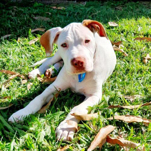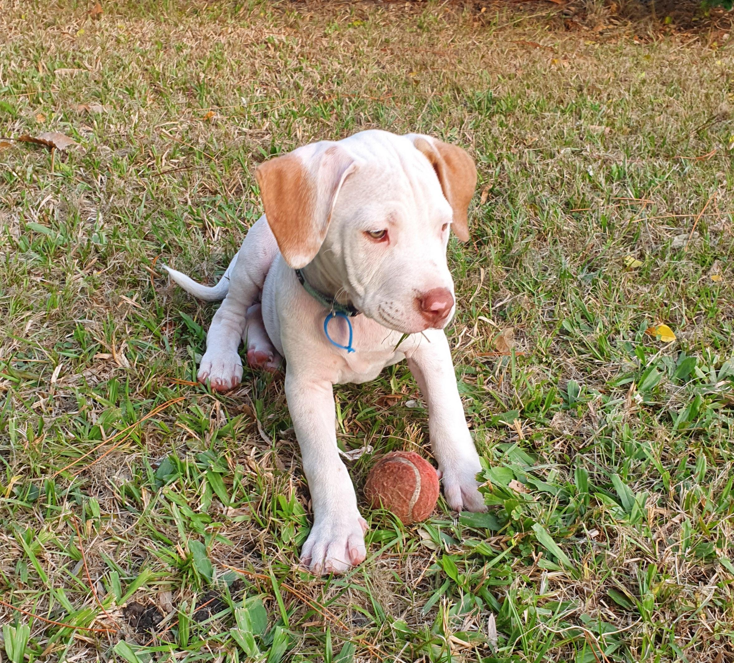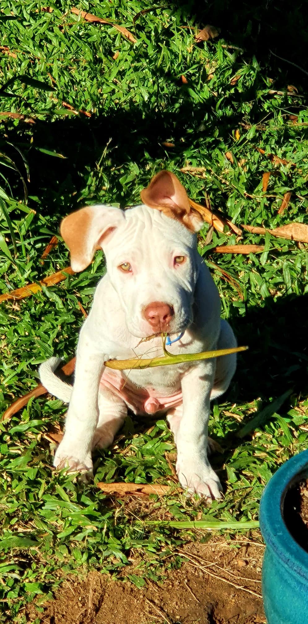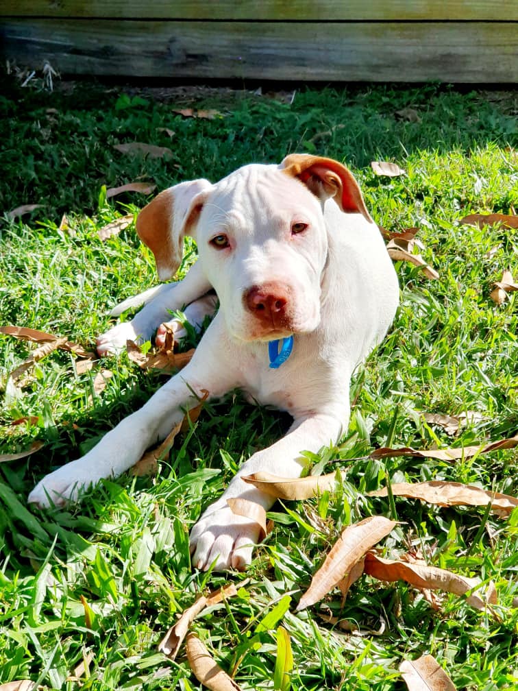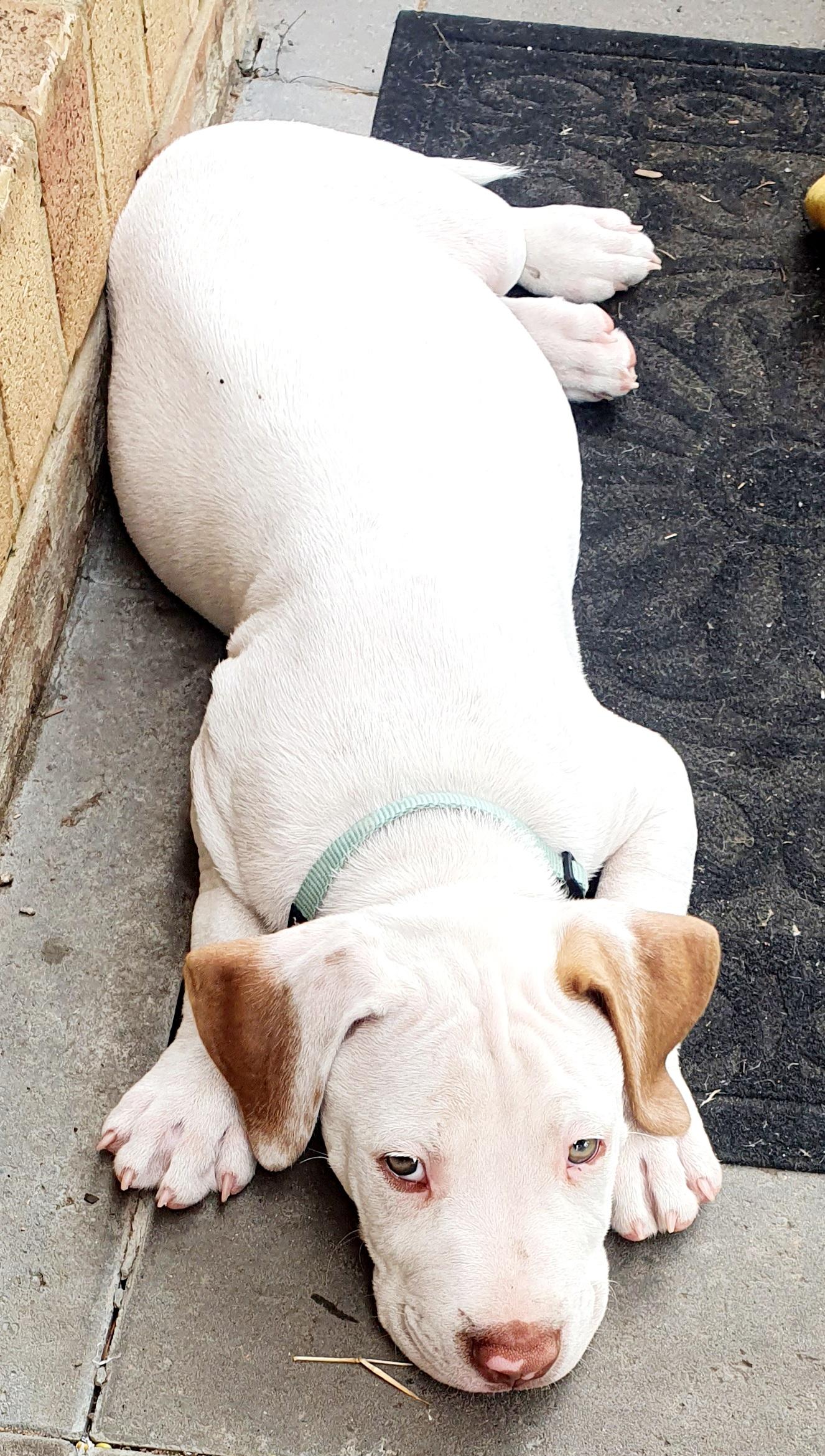 He loves his play time running around the backyard with his sister and his 10 and 14 year old humans but he's equally as content to plop his head in a lap for a snuggle.