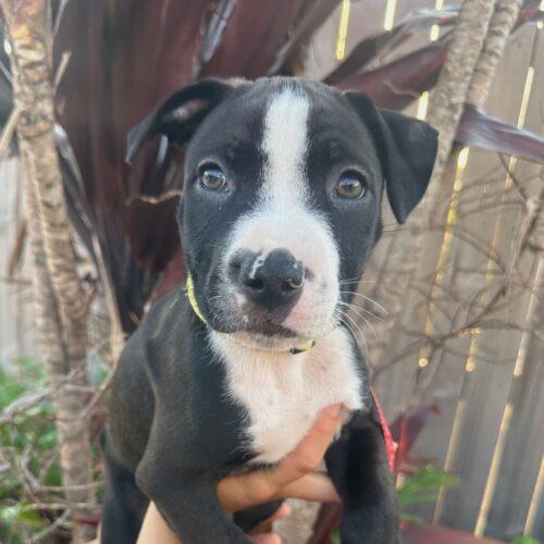 He loves his food, loves to play and chase his brothers around! He’s confident around his adult foster dog and great with kids. He loves to snuggle in the evening with a blanket.