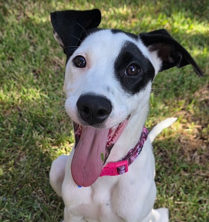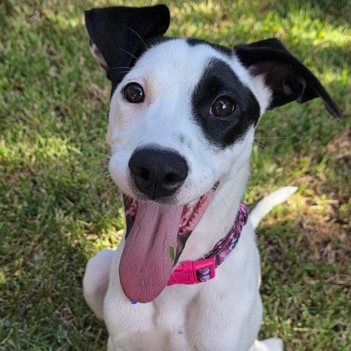 Currently living with an older dog and is very respectful. She’d love a home with another doggy friend to play with—or she’d be just as happy soaking up all your love as a solo pup.