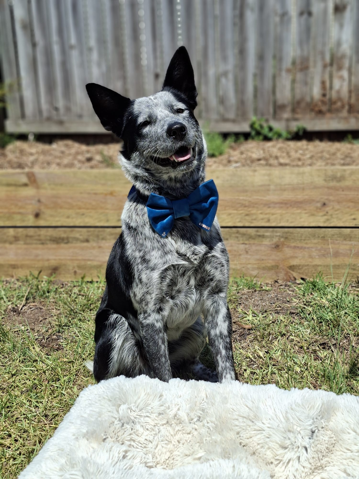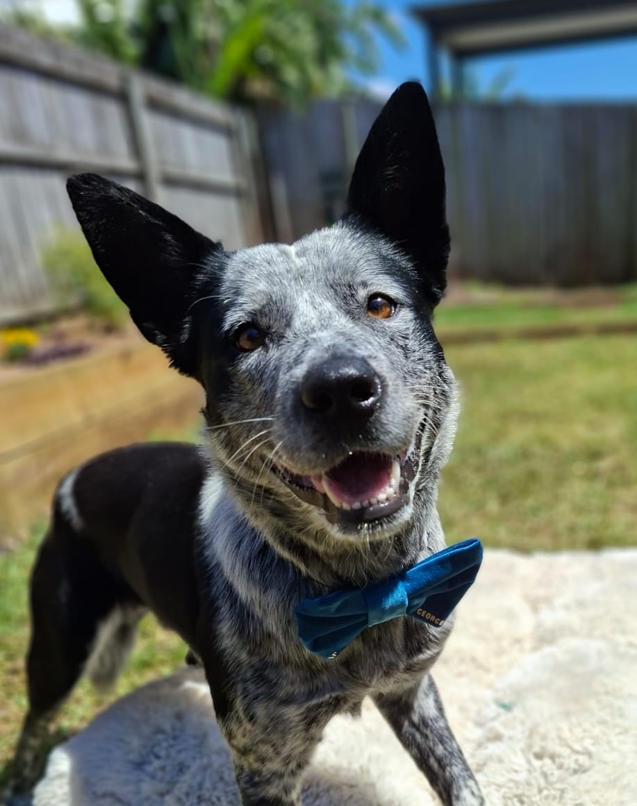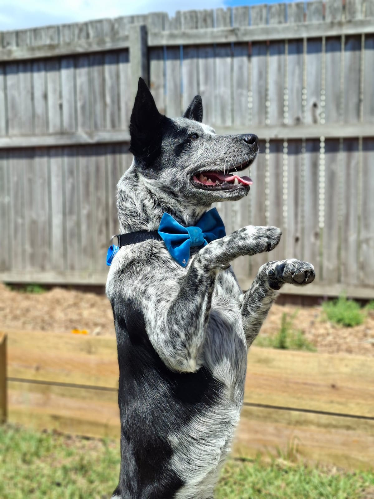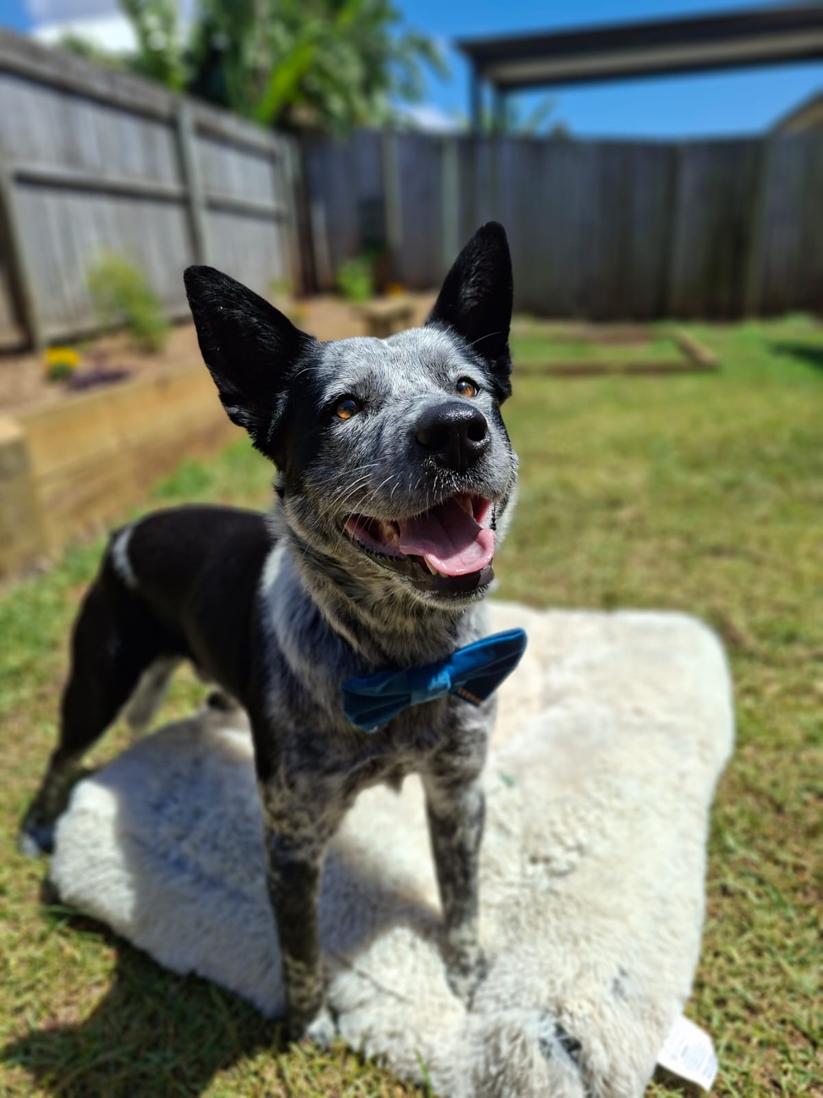 Smoky’s already picking up commands like “sit” and “on your bed,” and he’s walking well on lead. He’s a bit of a head-turner too—handsome and often complimented by strangers.