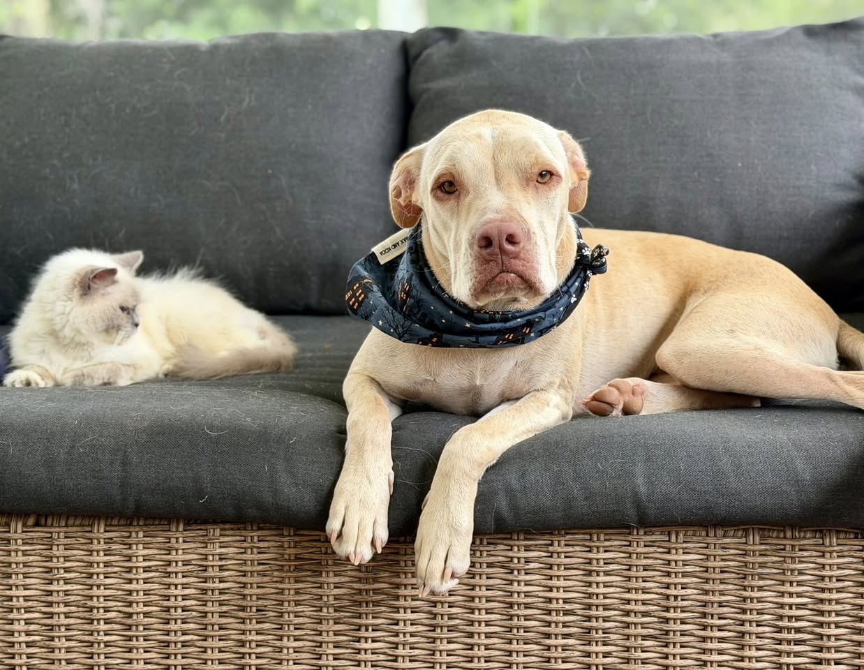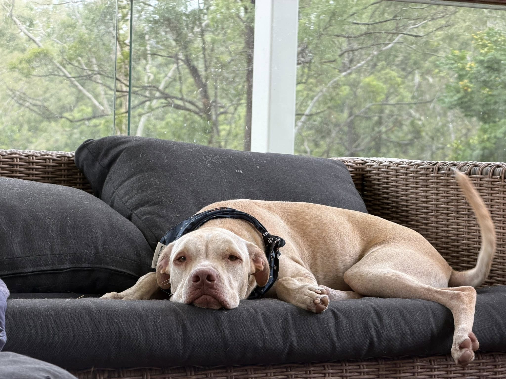 Now, Sparrow is thriving. He wakes up each day with joy, gratitude, and that soft sparkle in his eyes that says he’s ready to love with his whole heart. He is the biggest sook you’ll ever meet, affectionate, sensitive, and happiest when he’s right by your side. He doesn’t just like cuddles… he needs them. His favourite place in the world? Curled up with you!