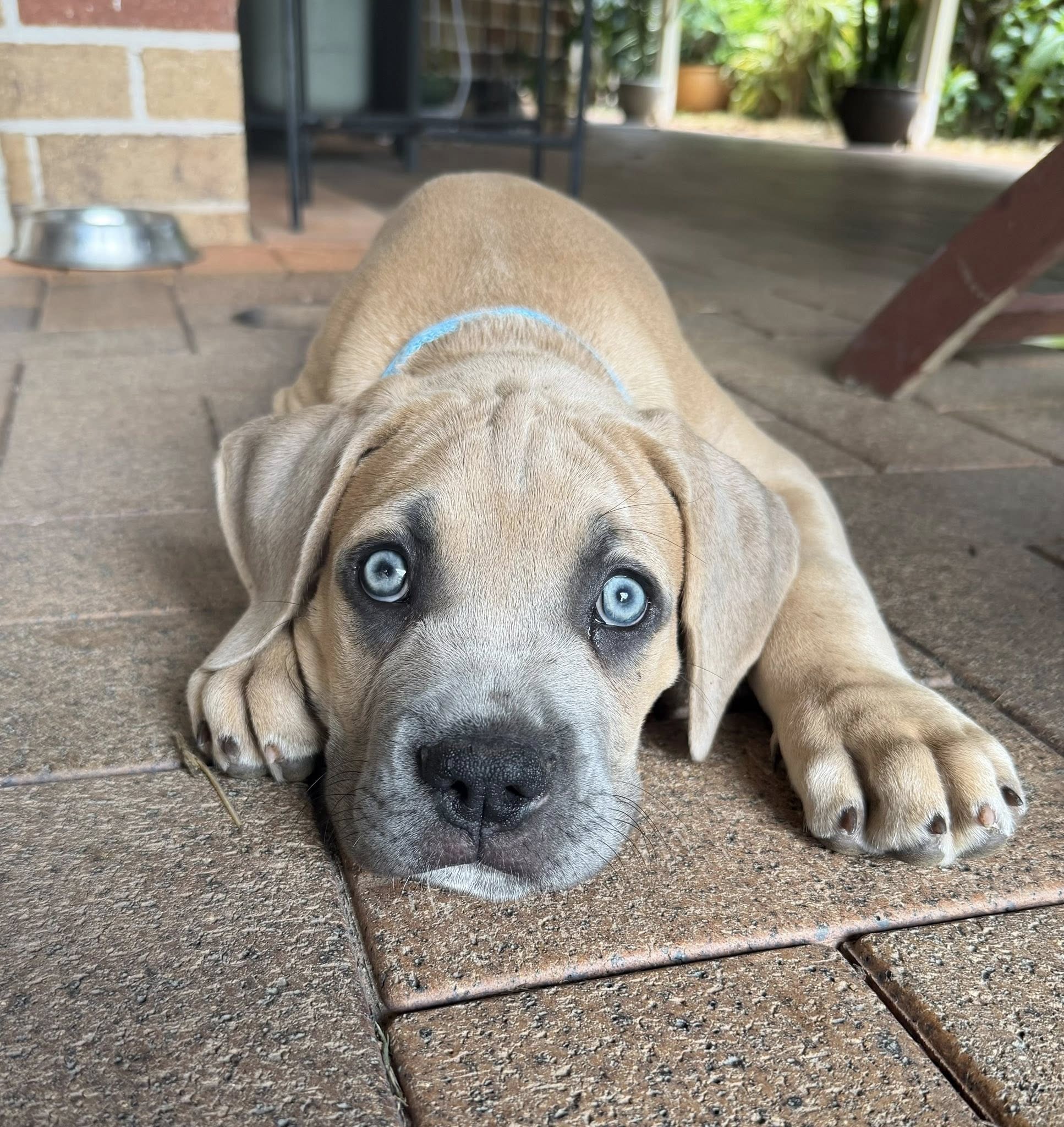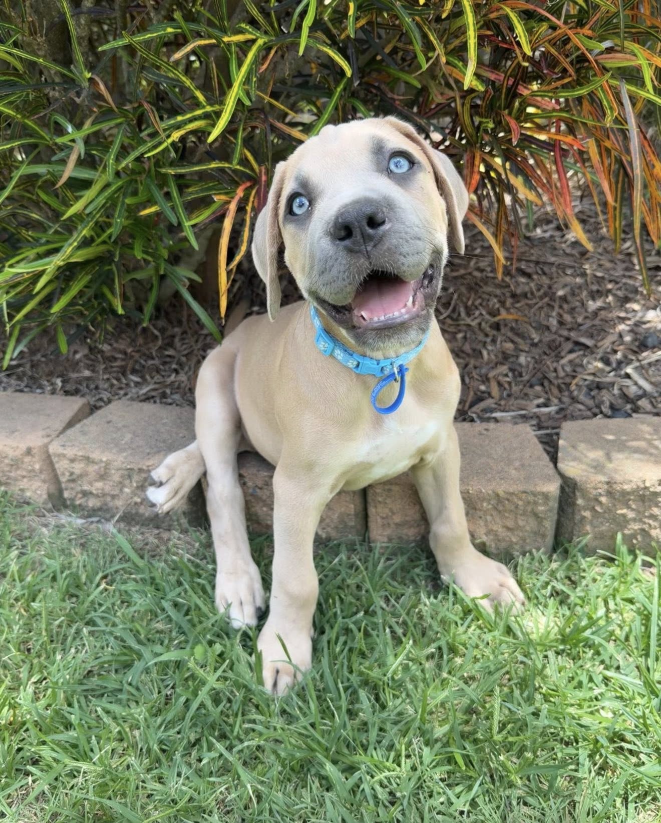 Hi, I’m Titan — a mighty name for a very sweet and loveable boy! I’m an affectionate pup who adores human company and is very people focused. My favourite place is in your lap soaking up cuddles and I’m happiest when I can follow you around and be part of whatever you’re doing.