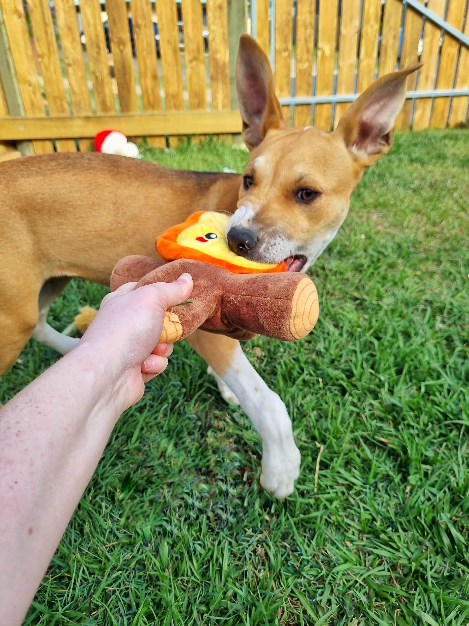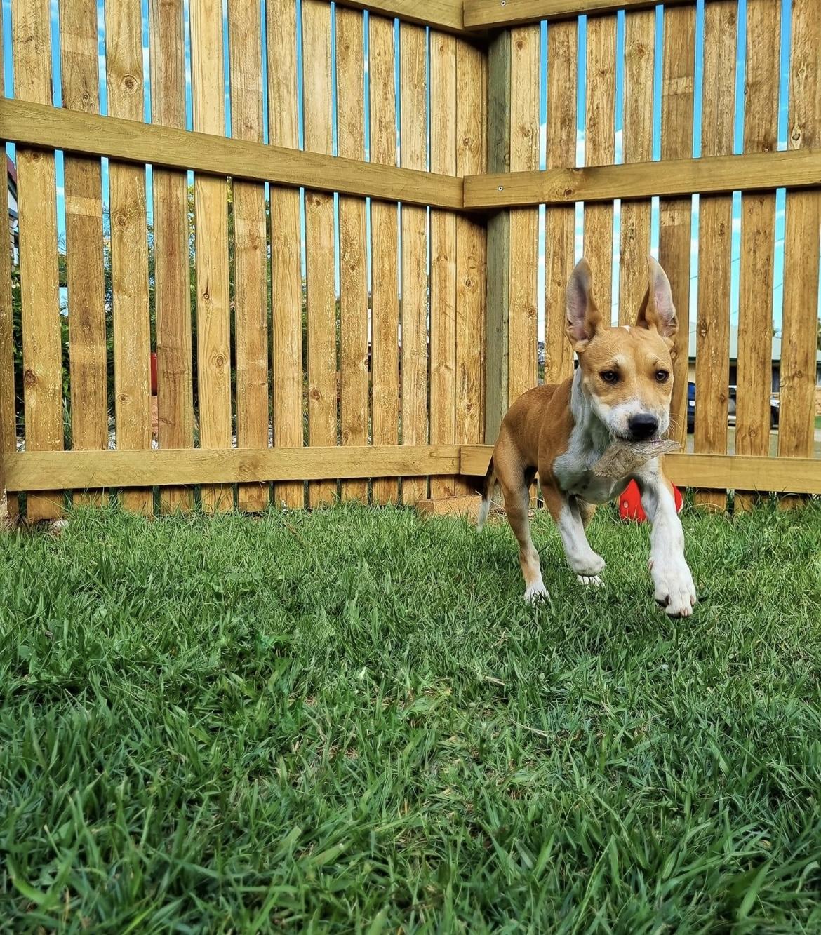 This intelligent canine companion is a quick learner, boasting an impressive repertoire of tricks like sitting, waiting patiently, and even holding out for her food. With fantastic recall, she's the epitome of loyalty, always eager to be by your side. Toffee's intelligence extends to her impeccable toilet training – she'll wait patiently at the door, ready for her outdoor adventures.