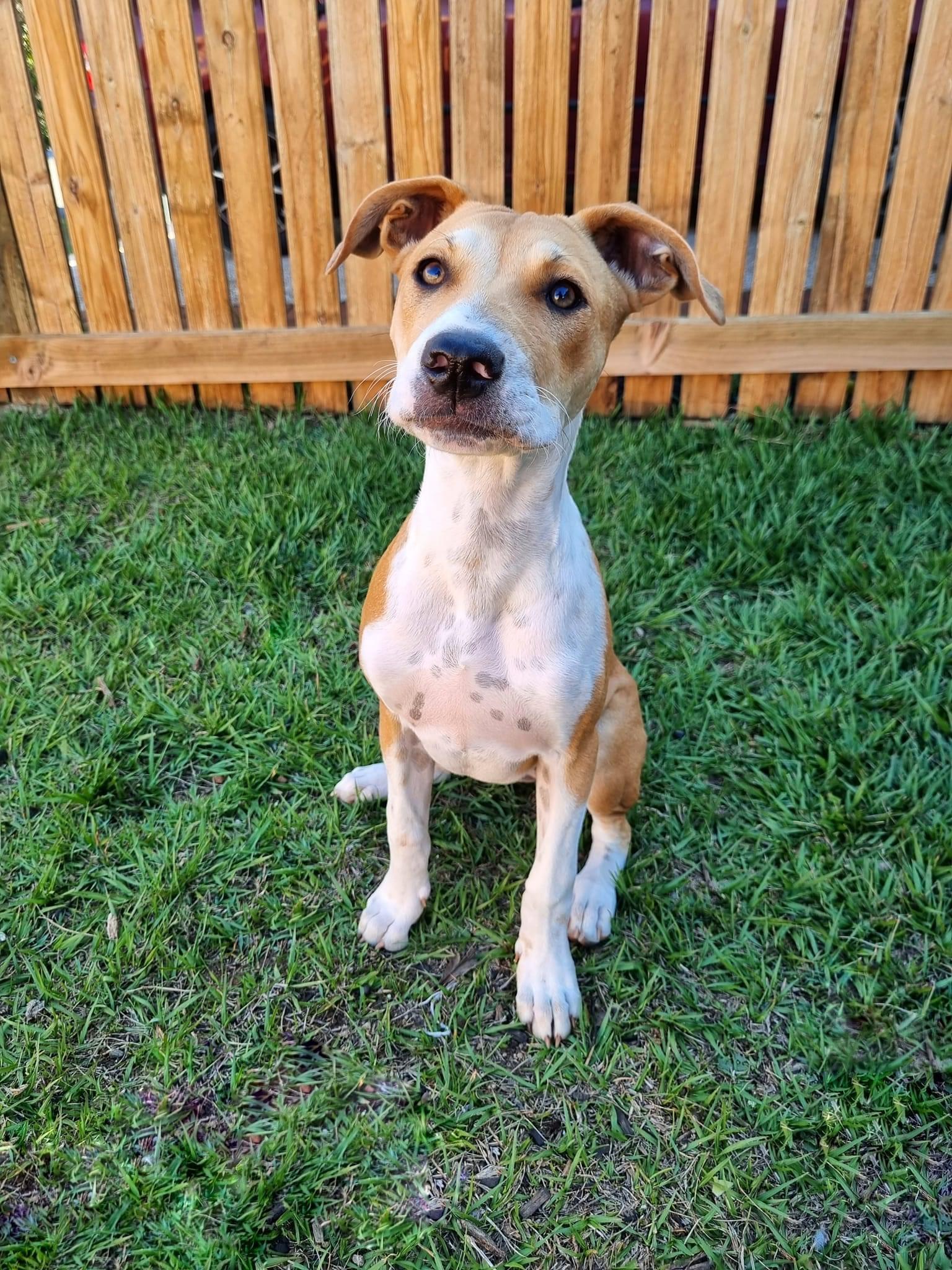 Toffee, a charming pup with a heart as sweet as her name, is ready to steal your heart and cuddle her way into your life. Though a tad shy at first, this lovable pup warms up quicker than a cup of cocoa on a winter's day. Toffee is not just a pet; she's a furry confidant who thrives on affection and cherishes being part of a loving family.