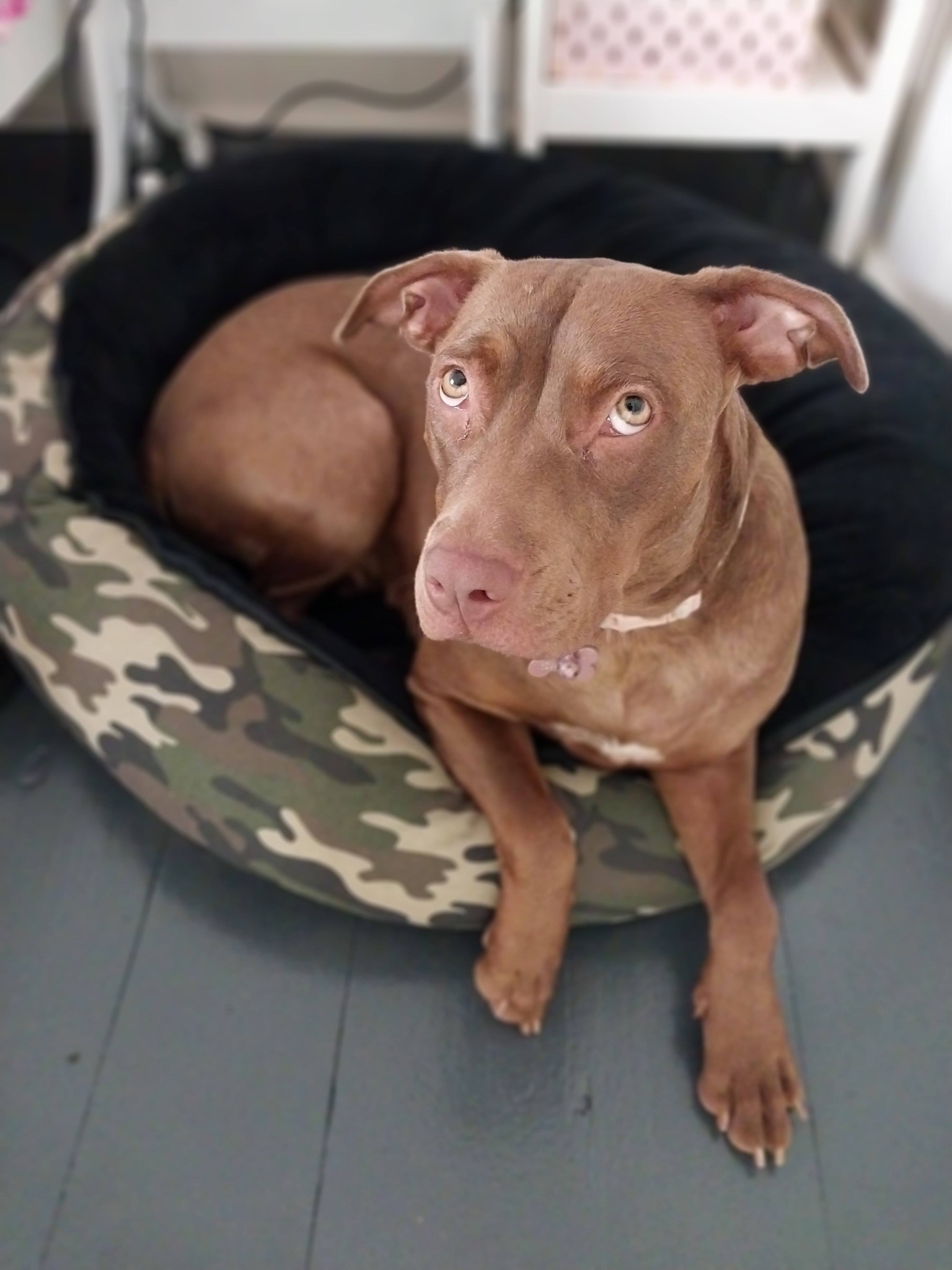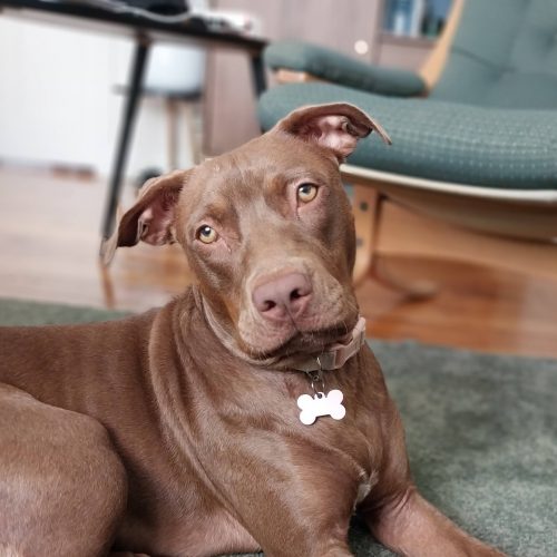 This cuddly girl arrived in foster with so much love to give and utterly unafraid to show it. She was a joyful little shadow from day one; it's hard to catch her without her tail wagging!