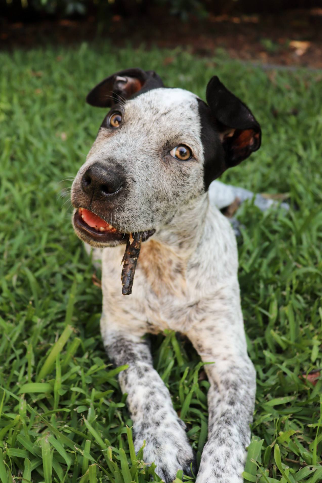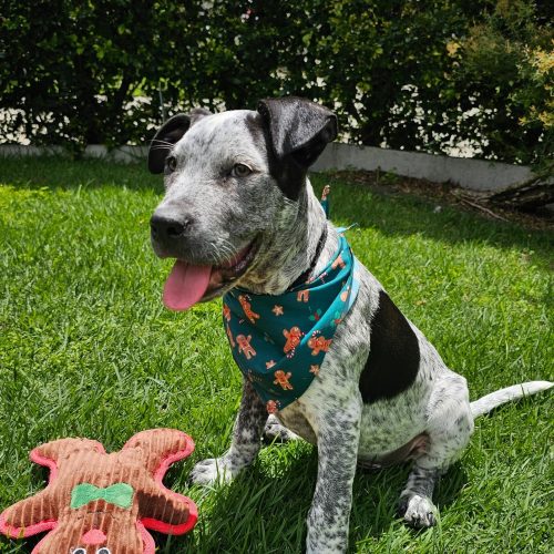 Wallace is a very happy go lucky pup who is food motivated and eager to learn. He loves playing with his squeaky toys, chasing after his brothers and sisters, hopping up onto foster Mums lap for a good cuddle and of course dinner time!