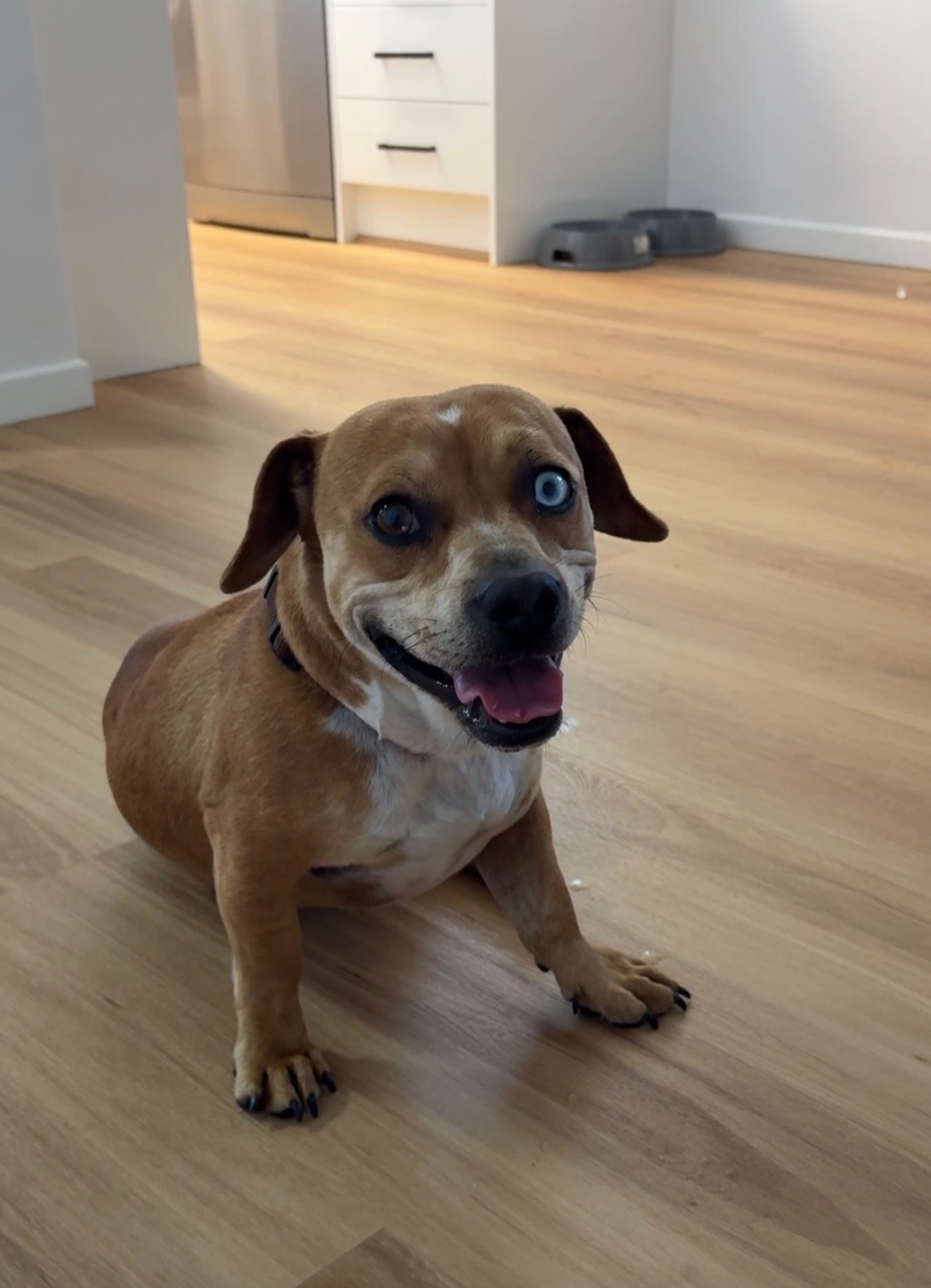 Meet cutie Winston — a 2 year-old French Bulldog x Dachshund with a sweet temperament, submissive nature and eyes that turn heads!