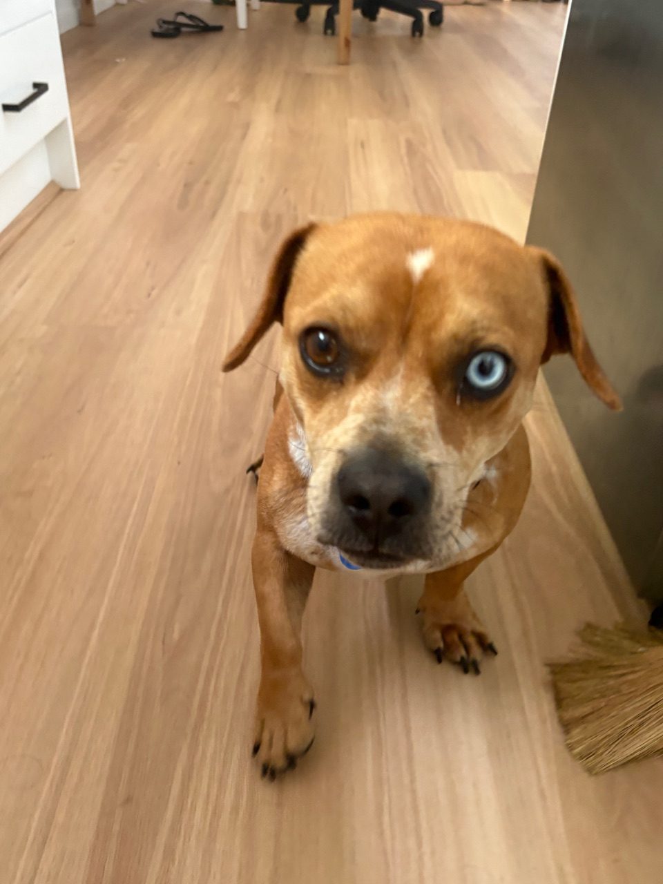 A calm and quiet home would suit him well. He is also good with other dogs. He’s a cuddle bug and will follow you around everywhere!