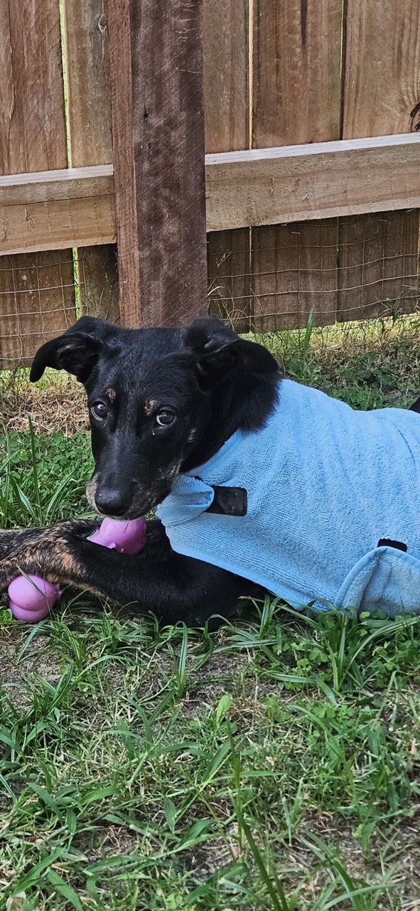 I have learnt to sit and mastering drop with treats. I am very food motivated so training has been a breeze. I love to play but when I am done playing I love to cuddle up for some kisses and snuggles.