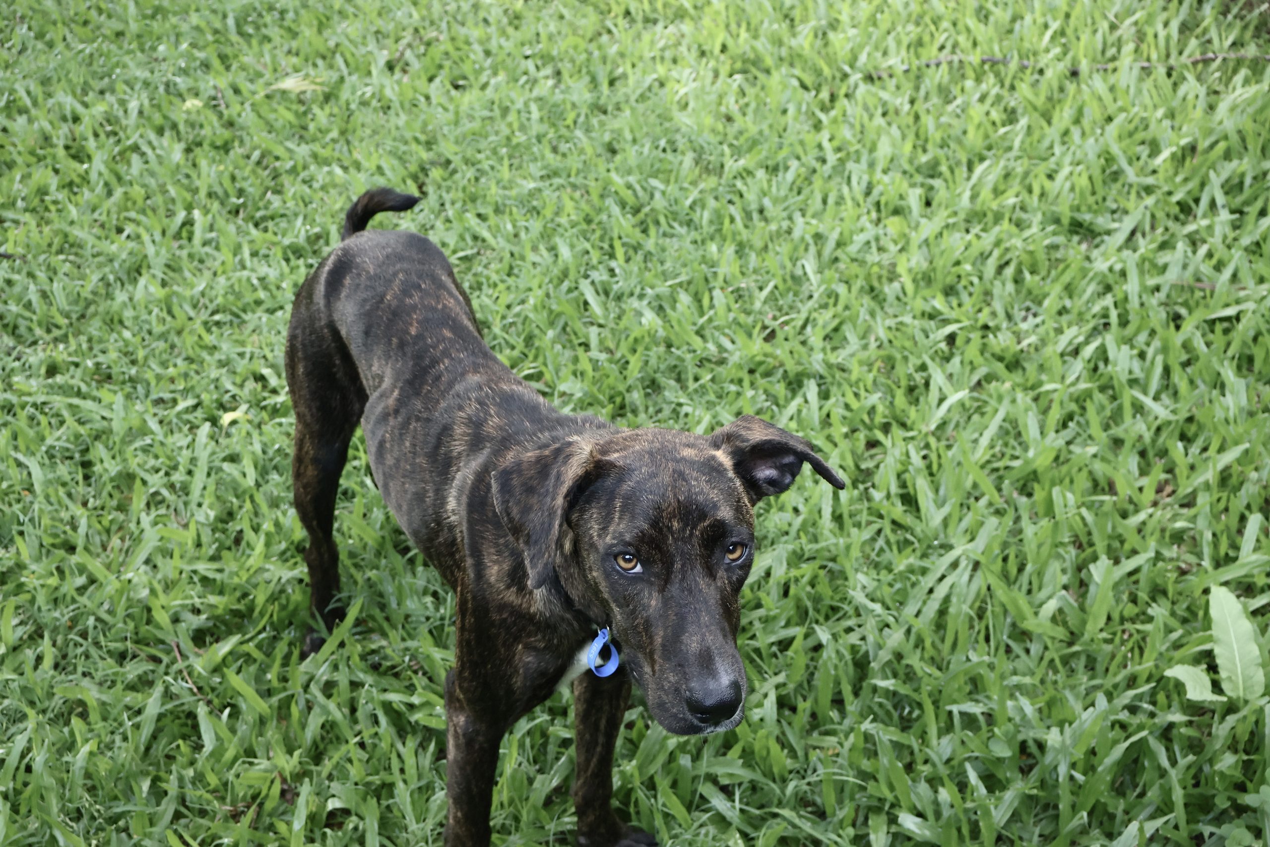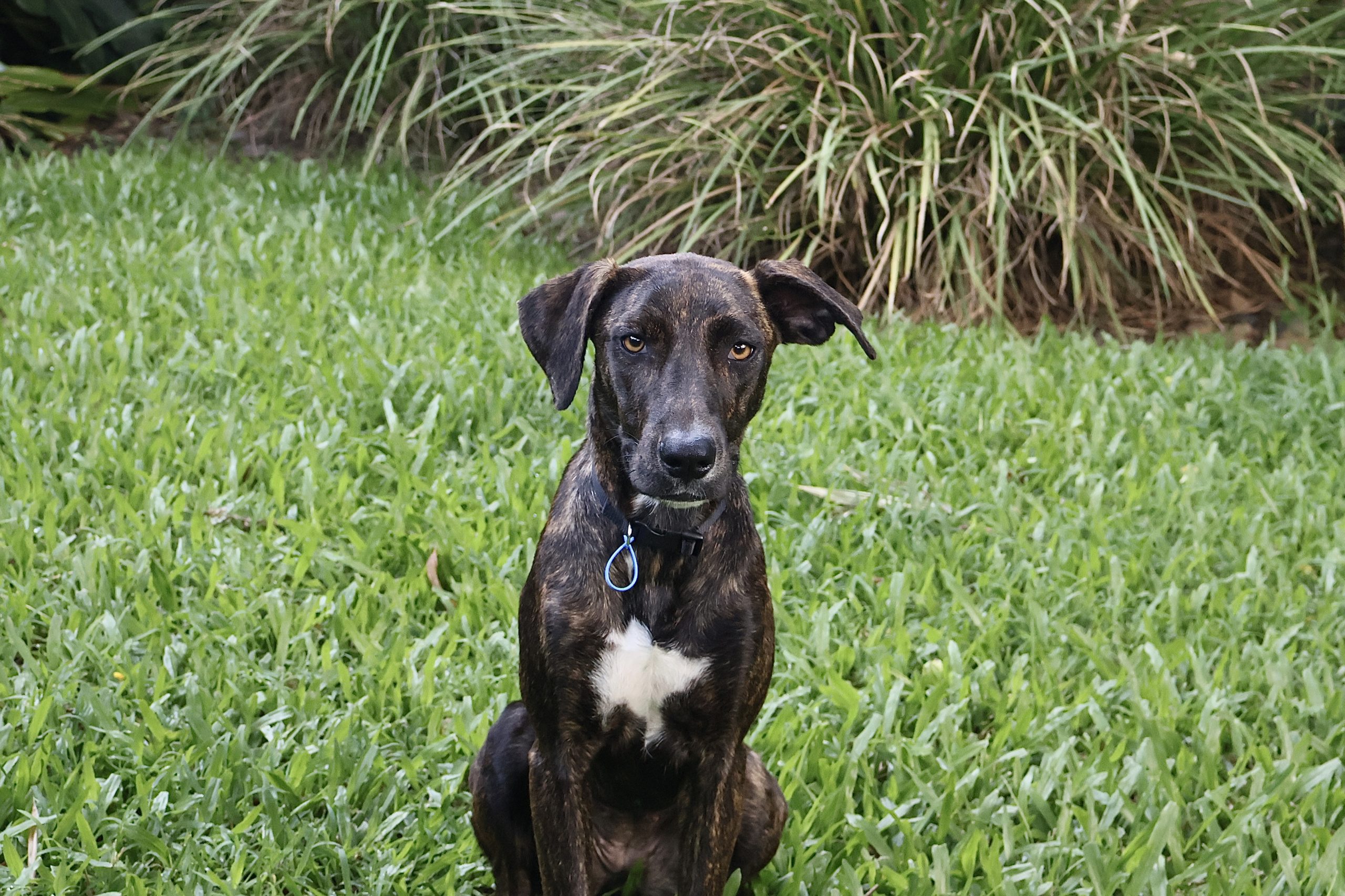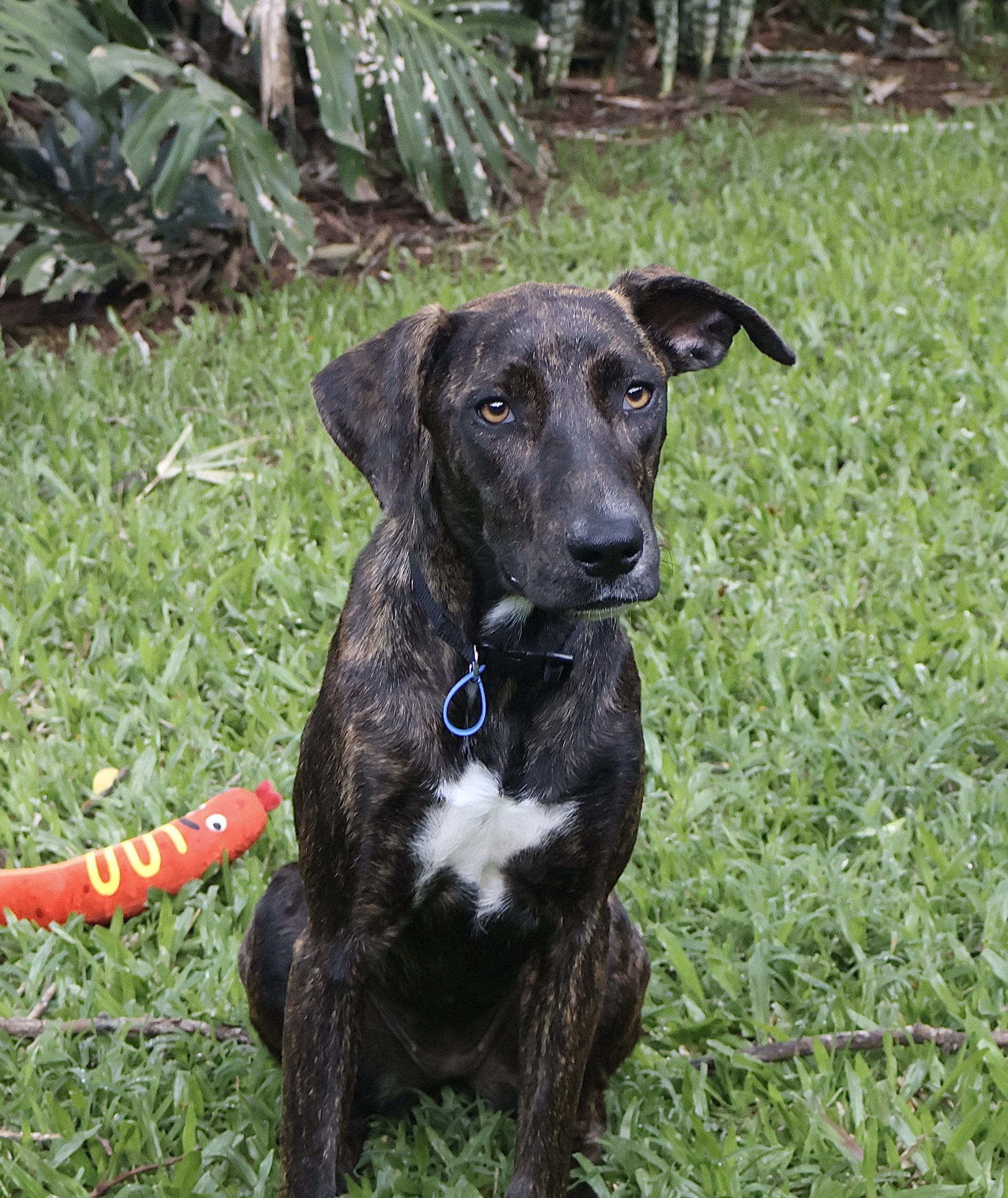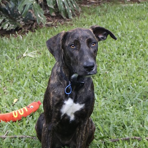 Zoey is still learning what personal space is… if she fits, she sits! Because of this she might be suited to a family with children over 8 as she is a bigger breed and does like to sit on your lap. She is very gentle taking treats from your hand but gets excited for meal times and needs to be reminded to patiently sit and wait for her food.  She is generally not a jumpy dog either so younger dog savvy children who don’t mind cuddles and kisses may also be okay.